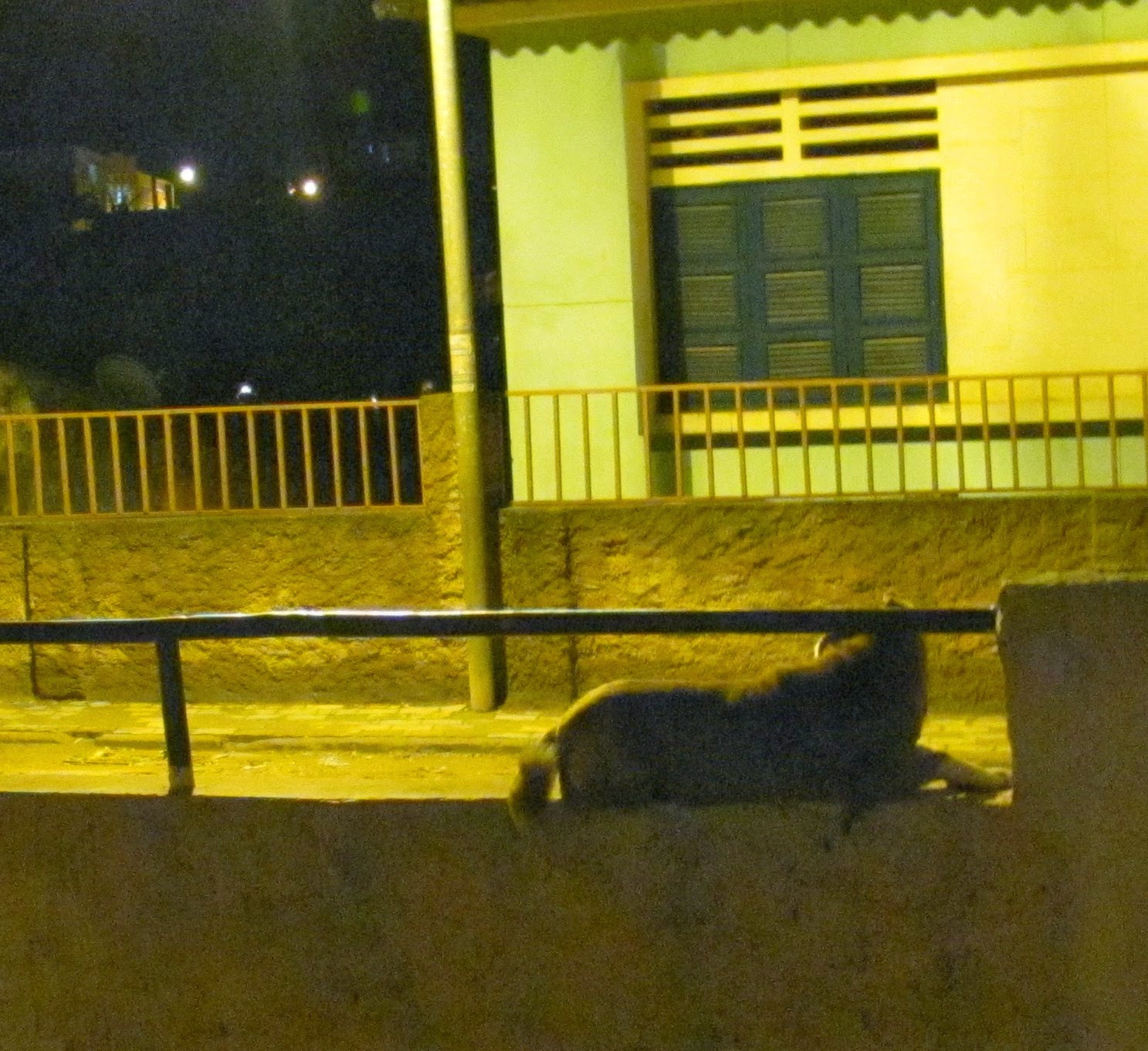 Não recebemos visitas, até ao momento, de animais muito exóticos, como leões, cobras ou elefantes, mas esses, segundo nos disseram, andam lá longe, pelos montes verdes do Uíge... e eu confesso que me sinto mais descansada por saber que esses não gostam nada de descer à cidade :-)